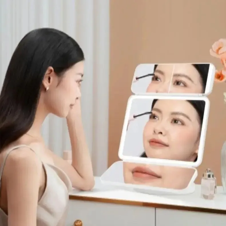 Trzyczęściowe Lusterko do Makijażu z Podświetleniem LED | Inteligentna Lampa Upiększająca